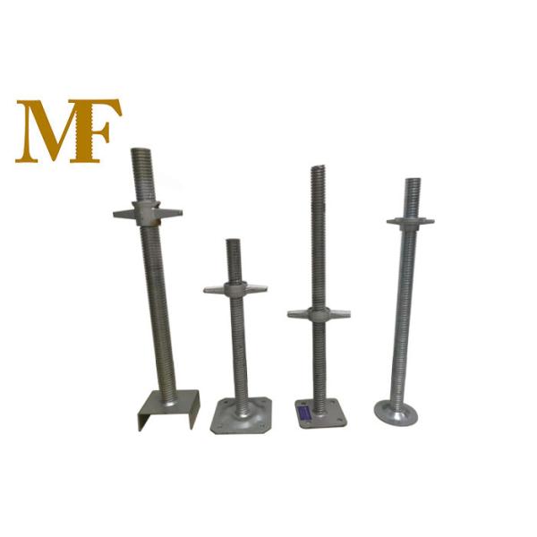 Ringlock scaffold leveling prop screw jack is consists with base plate, high strength thread rod and jack nut, to support and stabilize horizontal beam in slab construction. Our scaffold leveling prop screw jack is compatible with scaffold systems like ringlock scaffold system, cuplock scaffold system, kwikstage scaffold system, frame scaffold system, etc. Our jack bases are in compliance with EN74 standard, loading capacity is from 150KN to 200KN.